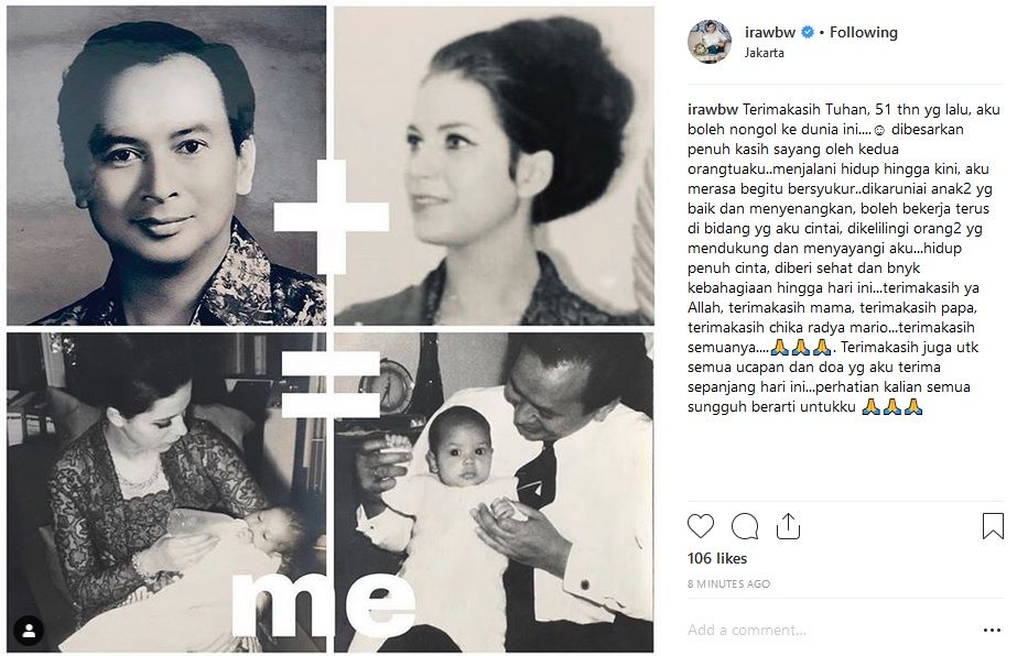 Selebritis 11 bulan lalu. Saat berkunjung ke rumah orang tua seperti pada foto-foto yang diunggah di Instagramnya Sabtu 184 Ira Wibowo hanya menyapa dari jauh. Ira sendiri menggunakan masker berwarna merah putih.