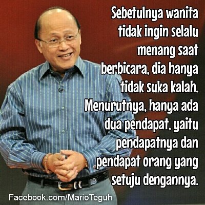Wanita selalu benar mario teguh. Semua orang pasti tahu mengenai Pak Mario Teguh motivator ternama di Indonesia yang sering memberikan kata-kata bijaknya baik dalam cinta maupun dalam kehidupan. Beliau juga sering mengeluarkan sepatah kata. Meskipun disakiti berkali-kali kamu tetap setegar batu karang.